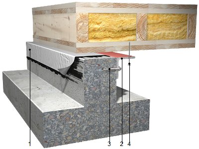 Recolzament de sostre sanitari ventilat, de panell contralaminat de fusta (CLT), sobre fonamentació de formigó, format per: impermeabilització de la fonamentació amb làmina bituminosa autoadhesiva, Protect 330 "ROTHOBLAAS" de 1 mm d'espessor, d'aplicació en fred, de fins a 60 cm de desenvolupament. | ||